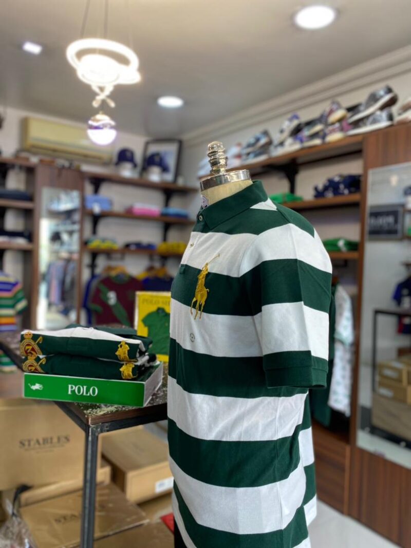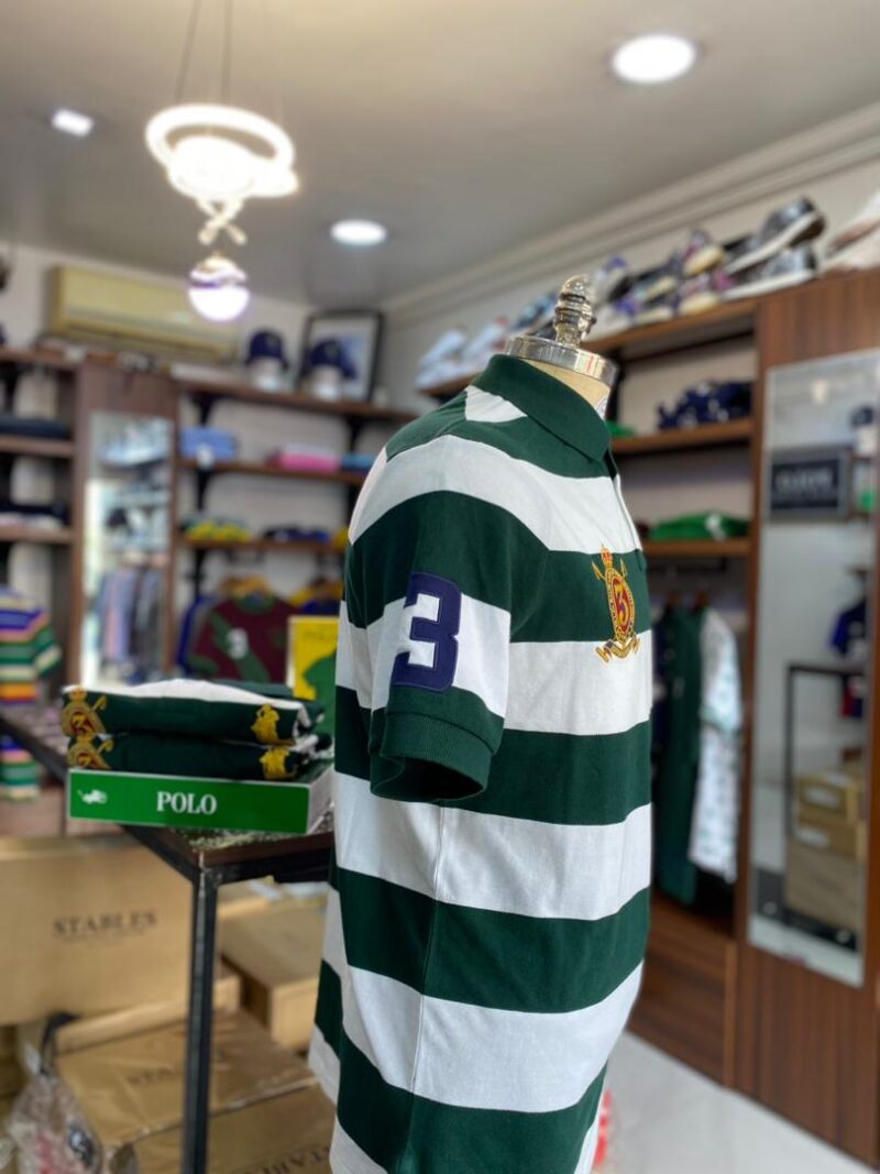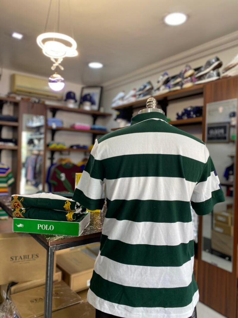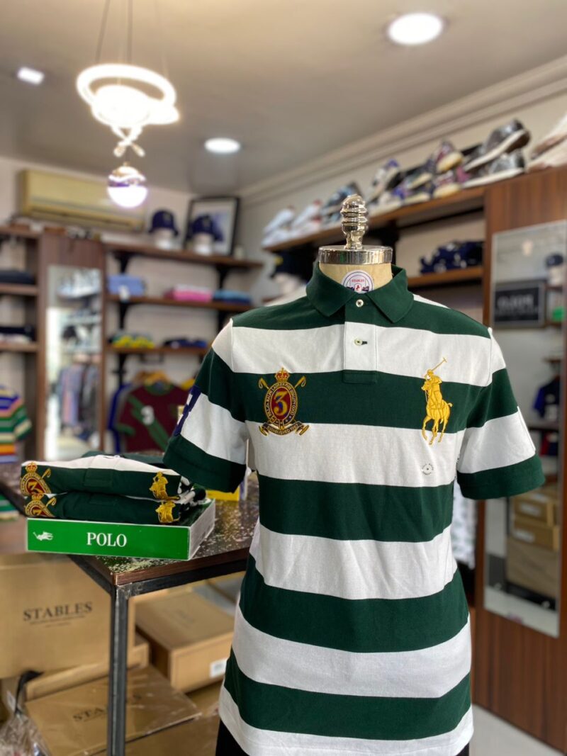 CRESTED BIG PONY STRIPE POLO GREEN/WHITE M/L/XL CLASSIC FIT