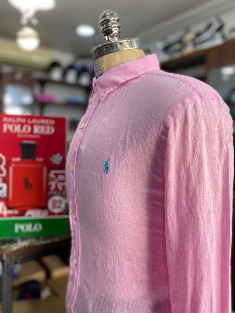 LINEN LONG SLEEVE SHIRT LIGHT PINK XL SLIM FIT